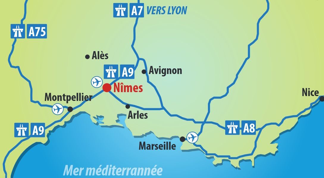 - Sortie autoroute : "Nîmes centre"